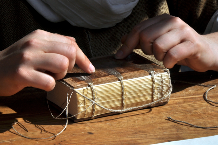 En atelier de reliure et de dorure, cet artisan du livre effectue des travaux de façonnage et de décoration : réparation des déchirures, réalisation de reliures en fonction de la qualité de l'ouvrage à habiller, fabrication d'éléments de protection, décoration par impression et ornementation de motifs dorés à l'or fin.
