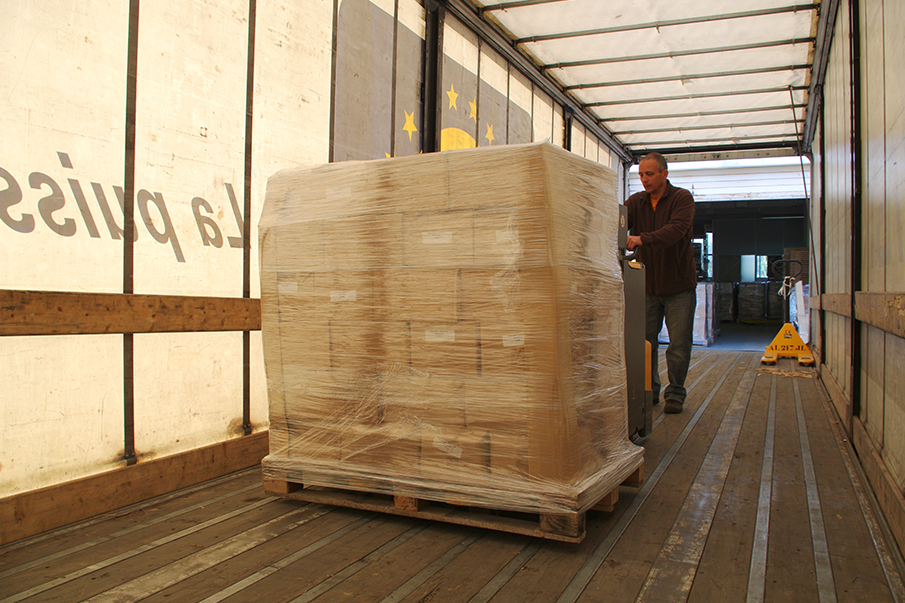 À partir du bon de commande, les préparateurs rassemblent les marchandises, en général sur une palette, et la remplissent selon des règles de sécurité. Avant de la diriger vers le service livraison, ils s'assurent une dernière fois de la conformité de la commande, puis emballent la palette avec du film plastique, y appliquent des pictogrammes (symboles indiquant la nature de la marchandise et les consignes à suivre lors de son stockage, de sa manutention et de son expédition) et une étiquette (avec le numéro de suivi du colis, la date d'expédition, le nombre de colis, le poids du colis, l'adresse du destinataire...) assurant la traçabilité de l'envoi.